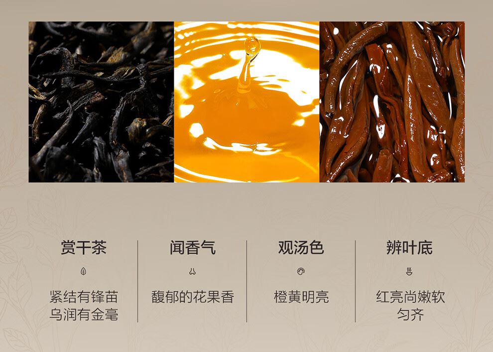 低溫慢烘 花果香馥郁高揚(yáng) 嚴(yán)格遵循金駿眉制茶工藝 采用「低溫慢烘,持久鎖香」技藝,融合萎凋、發(fā)酵與烘焙的精微控制,造就這一杯金駿眉紅茶,湯色橙黃透亮,口感濃醇甜爽,花果香馥郁。