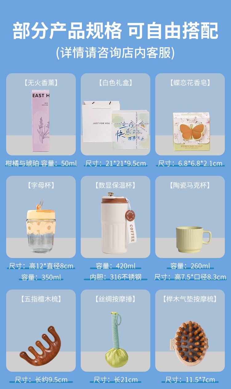 編碼:DAL1207 內(nèi)配:絲綢按摩捶+馬克杯+仿真絲眼罩+五指檀木梳 注:產(chǎn)品報價只對應(yīng)主圖款,詳情頁其他款報價具體聯(lián)系