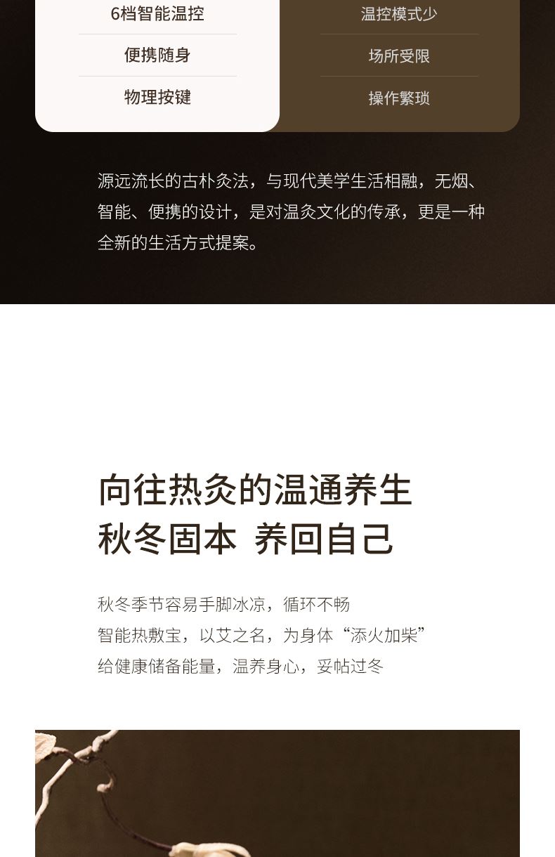 ● 黑玉金絲艾餅雙料養(yǎng)身靈感:人工挑選,高壓成餅,再包裹鋁箔,促使熱力均勻釋放,艾香不止