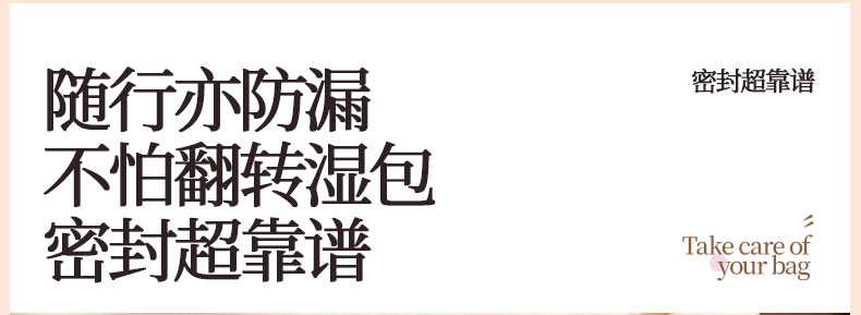 5.隨行宜防漏,不怕翻轉(zhuǎn)濕包,密封超靠譜