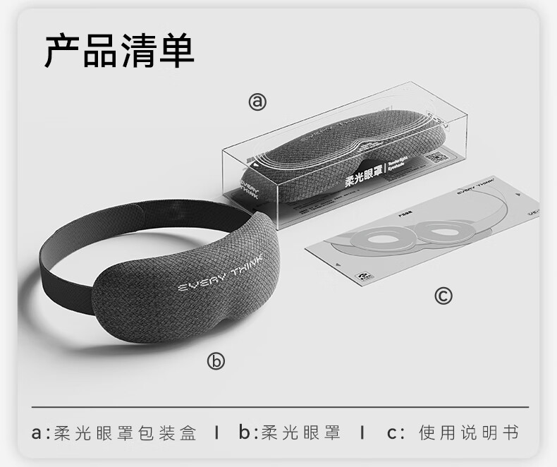 Ec2 頸托枕 規(guī)格參數(shù):面料:75%錦綸,25%氨綸;填充物:海綿 規(guī)格:頸托枕*1;收納包*1 單臺包裝尺:122*117*115;單臺重量:300g(含彩盒) 規(guī)格:36臺 可選顏色:深灰、雅紫 Ve2 柔光眼罩 規(guī)格參數(shù): 外側(cè)面料成分:32.7%滌綸+50.2%錦綸+17.1%氨綸 內(nèi)側(cè)面料成分:88.1%尼龍+11.9%氨綸 松緊帶成分:55%錦綸+20%橡膠絲+25%低彈絲 規(guī)格:眼罩*1 單臺包裝尺寸:210*85*45;單臺重量:100g(含彩盒) 規(guī)格:80臺 可選顏色:深灰 RS2 星星耳塞 規(guī)格參數(shù):硅膠,水性聚氨酯 規(guī)格:耳塞*6(三對裝);硅膠收納包*1 單臺包裝尺寸:70*30*83;單臺重量:34g(含彩盒) 可選顏色:星霧紫、暖月白、桃桃粉