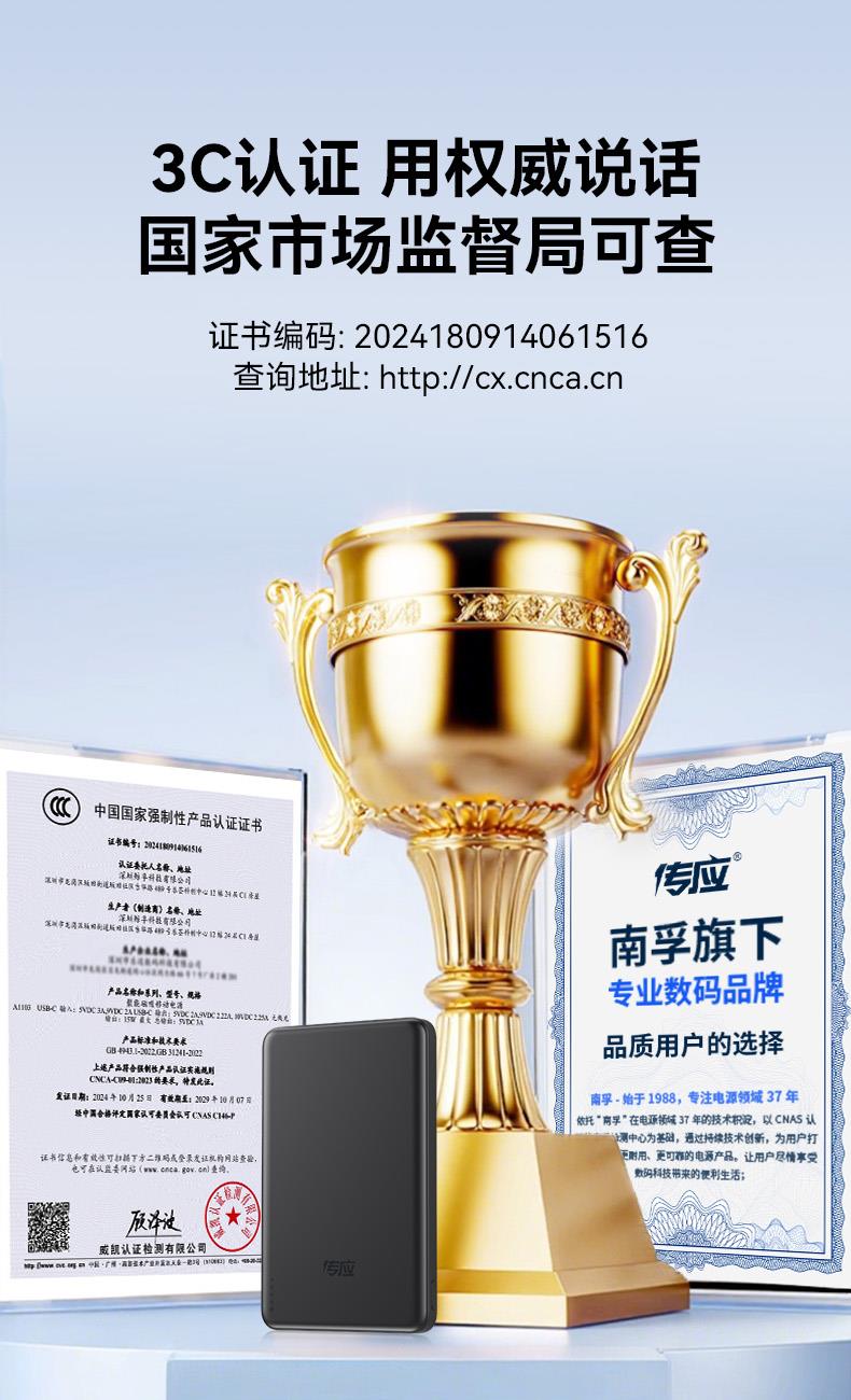 傳應|南孚磁吸移動電源5000mAh-A1051深灰色 禮品已成功加入PPT!