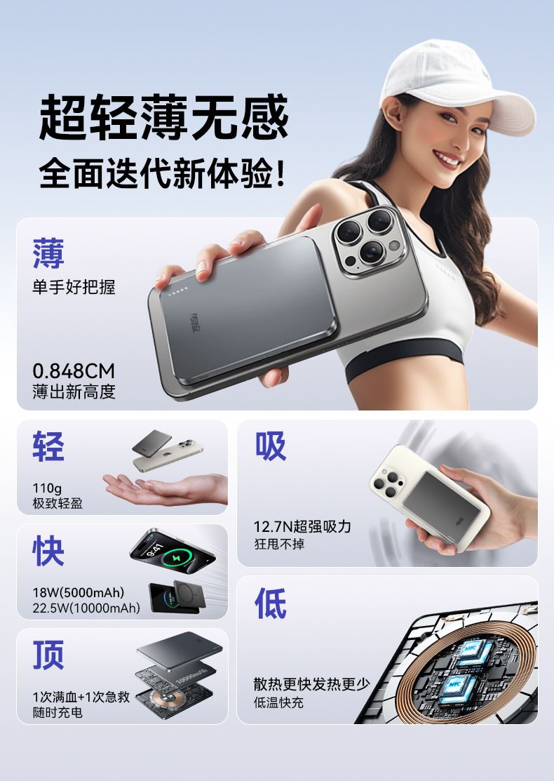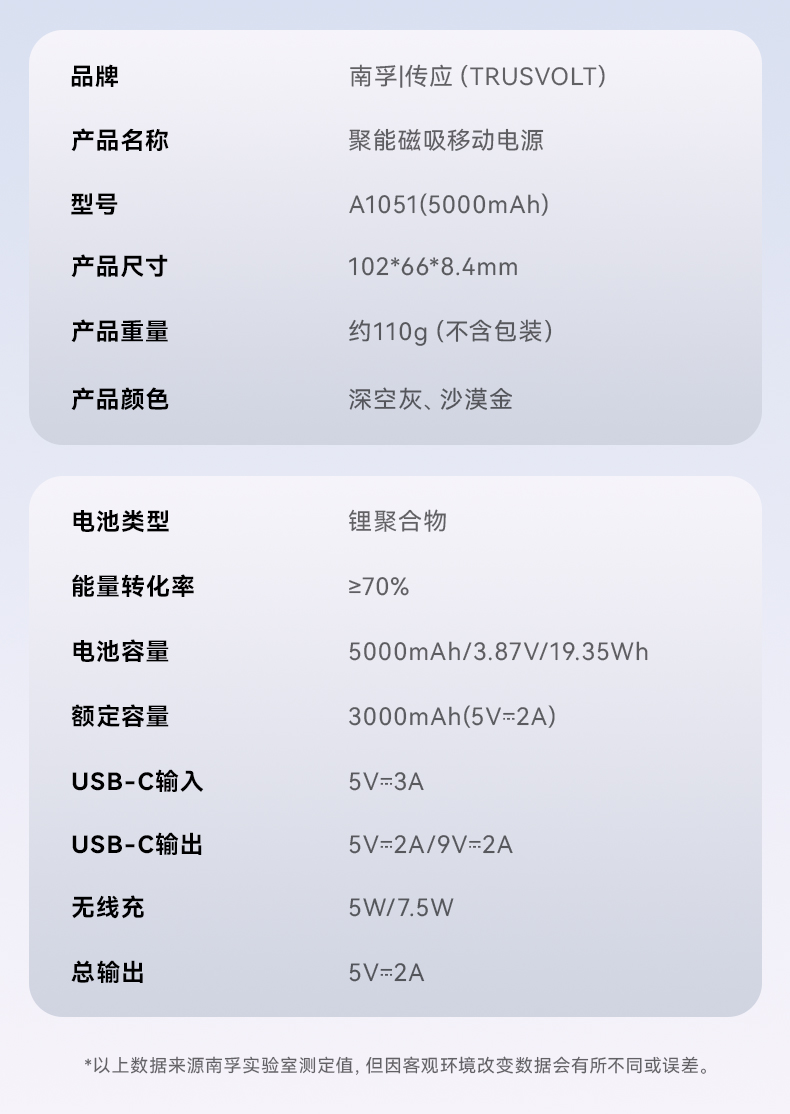 傳應|南孚磁吸移動電源5000mAh-A1051深灰色