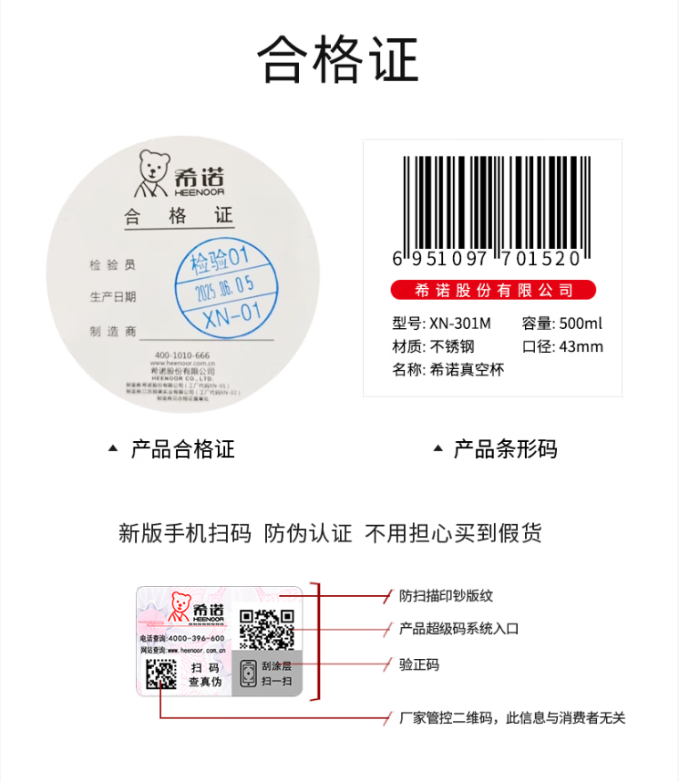 XN-300M: 39(杯口直徑)x66(直徑)x186(高度)SUS316L不銹鋼 SUS316L、食品級硅膠 食品級硅膠 XN-300M:6951097701513 6小時(shí)≥60℃