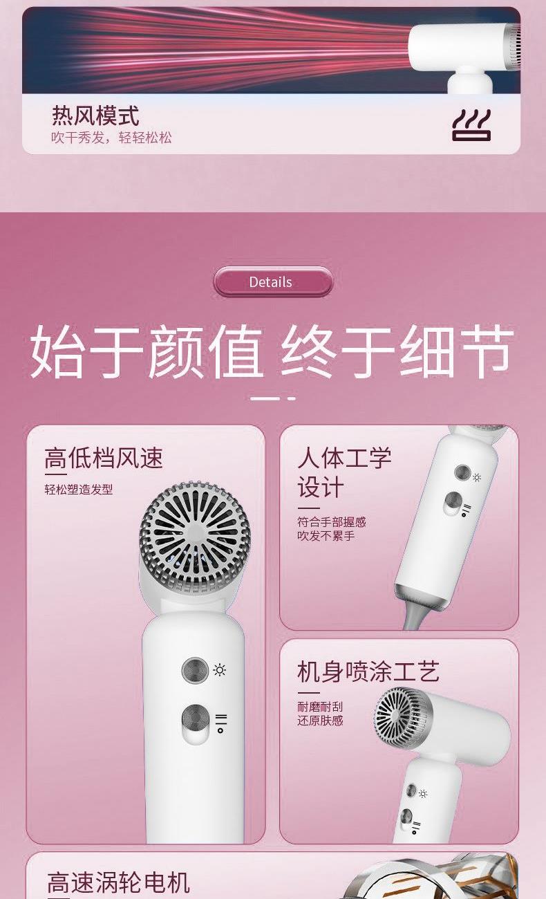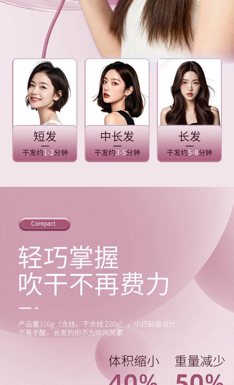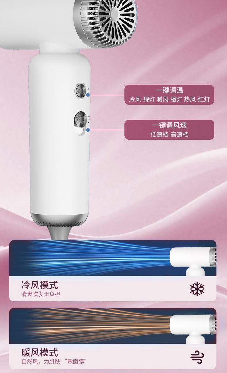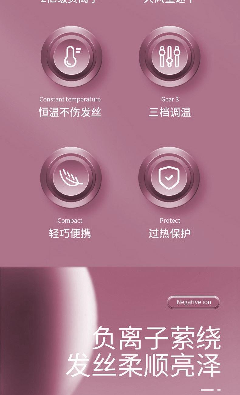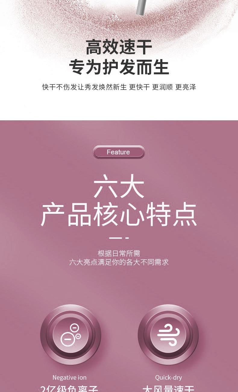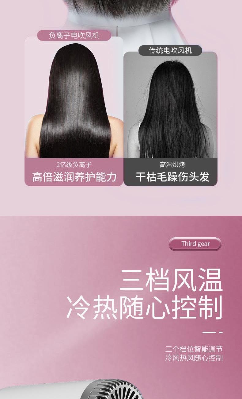 2.2億級負(fù)離子,吹發(fā)不毛躁,發(fā)根深層補(bǔ)水頭發(fā)柔順有光澤;