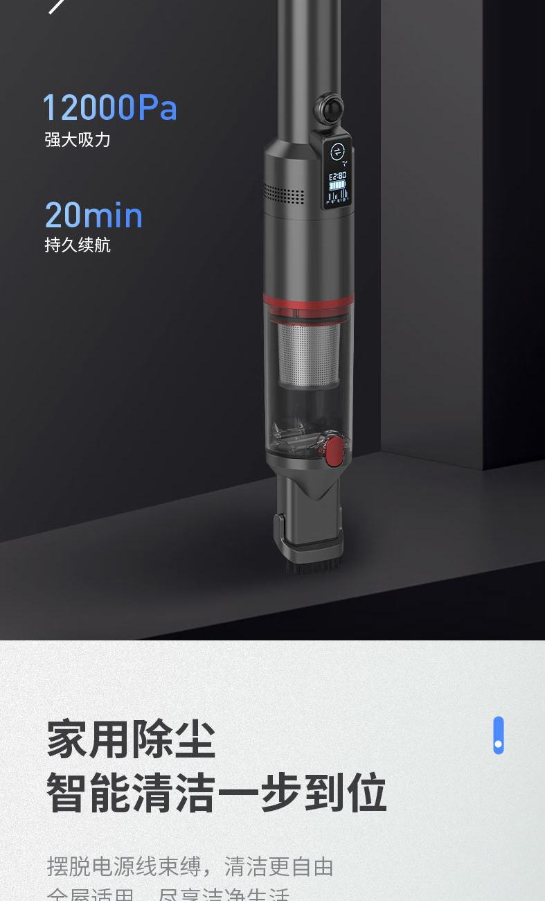 數(shù)碼無(wú)刷電機(jī),MAX模式 12000Pa強(qiáng)勁吸力。