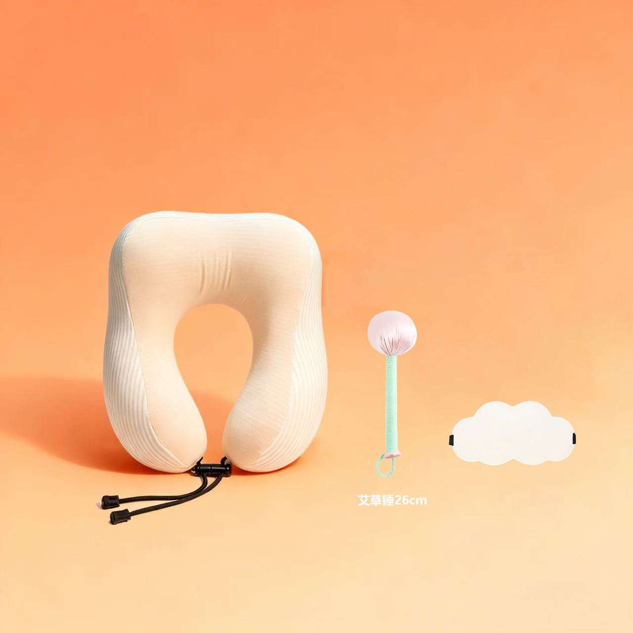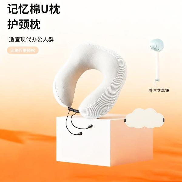 貨號 :Z2026 材質(zhì) :U型枕:短毛絨 眼罩:聚酯纖維 規(guī)格 :U型枕:30*25*13cm (記憶棉) 組合:枕頭眼罩艾草錘