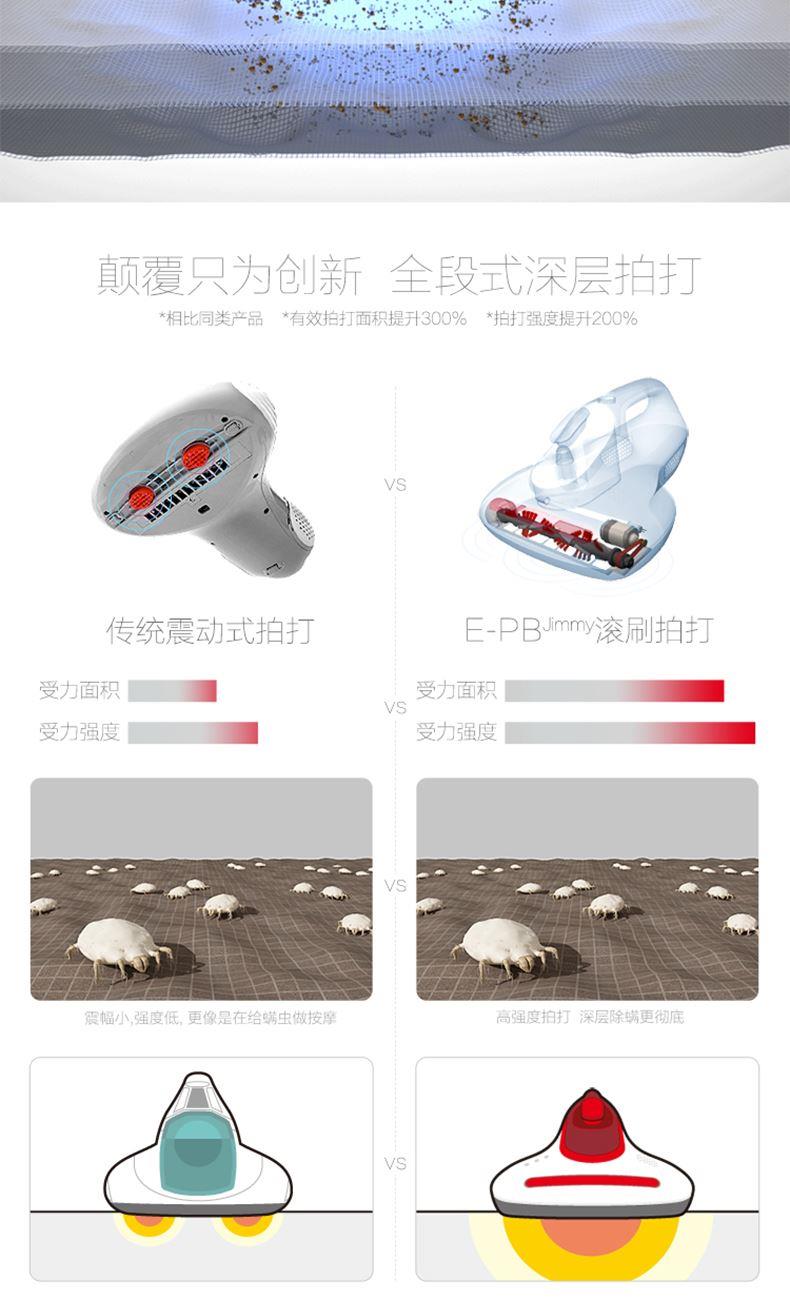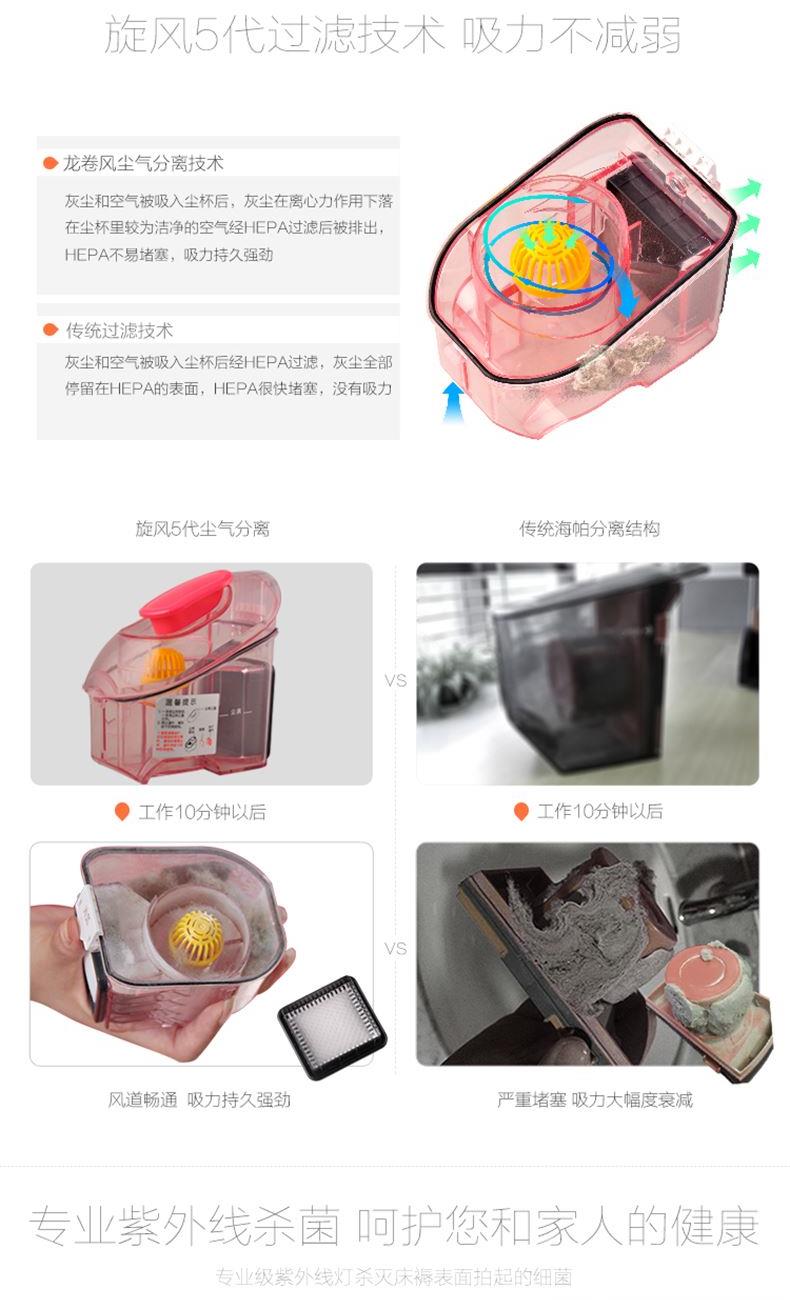 外包裝尺寸:彩箱 295*180*365 黃板箱 375*305*380 凈重:1.9KG 毛重:2.3KG 17CM超寬吸口 “全段”拍打 智能紫外線開關(guān)設(shè)計(jì) 更安全 旋風(fēng)5代過濾技術(shù) 吸力不衰減 多重降噪技術(shù) 聲音更輕柔