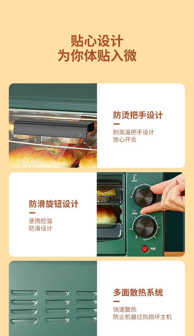 不銹鋼發(fā)熱管加熱,升溫快且受熱均勻,烘焙口感更出眾