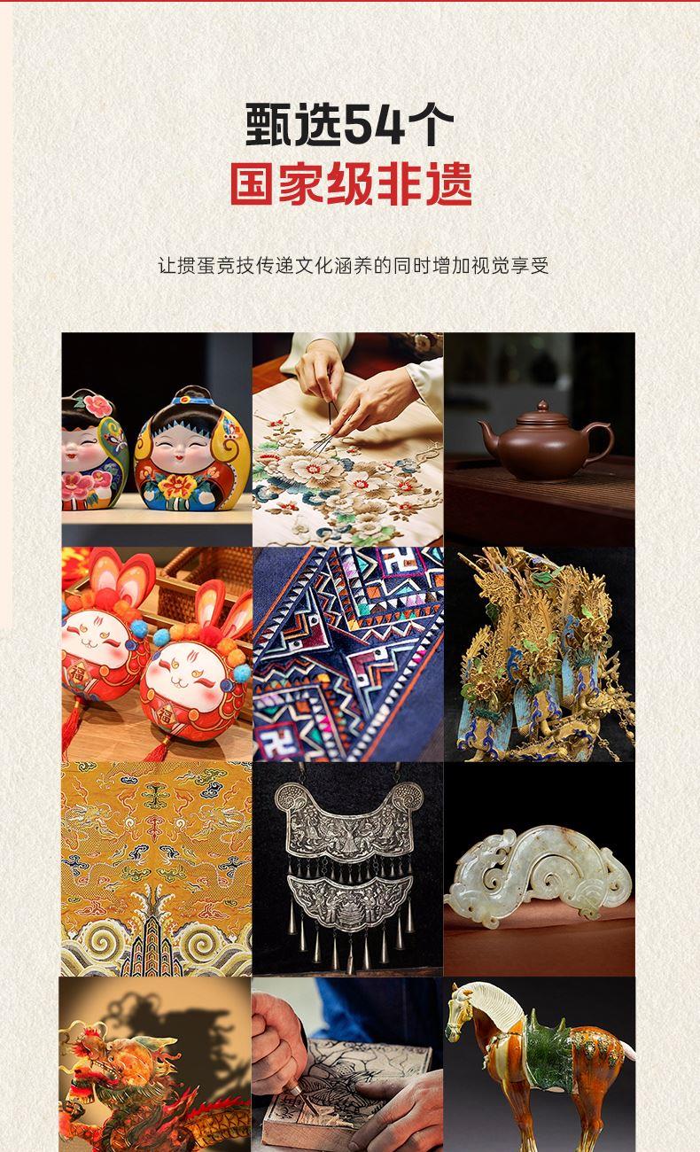 配置 · ① 非遺主題摜蛋2副裝-寬款×2套 ② 摜蛋茗茶×8泡 ③ 摜蛋秘籍×1本 ④ 精美禮盒×1套 尺寸 · 310×230×40mm(盒)丨330×260×110mm(袋)